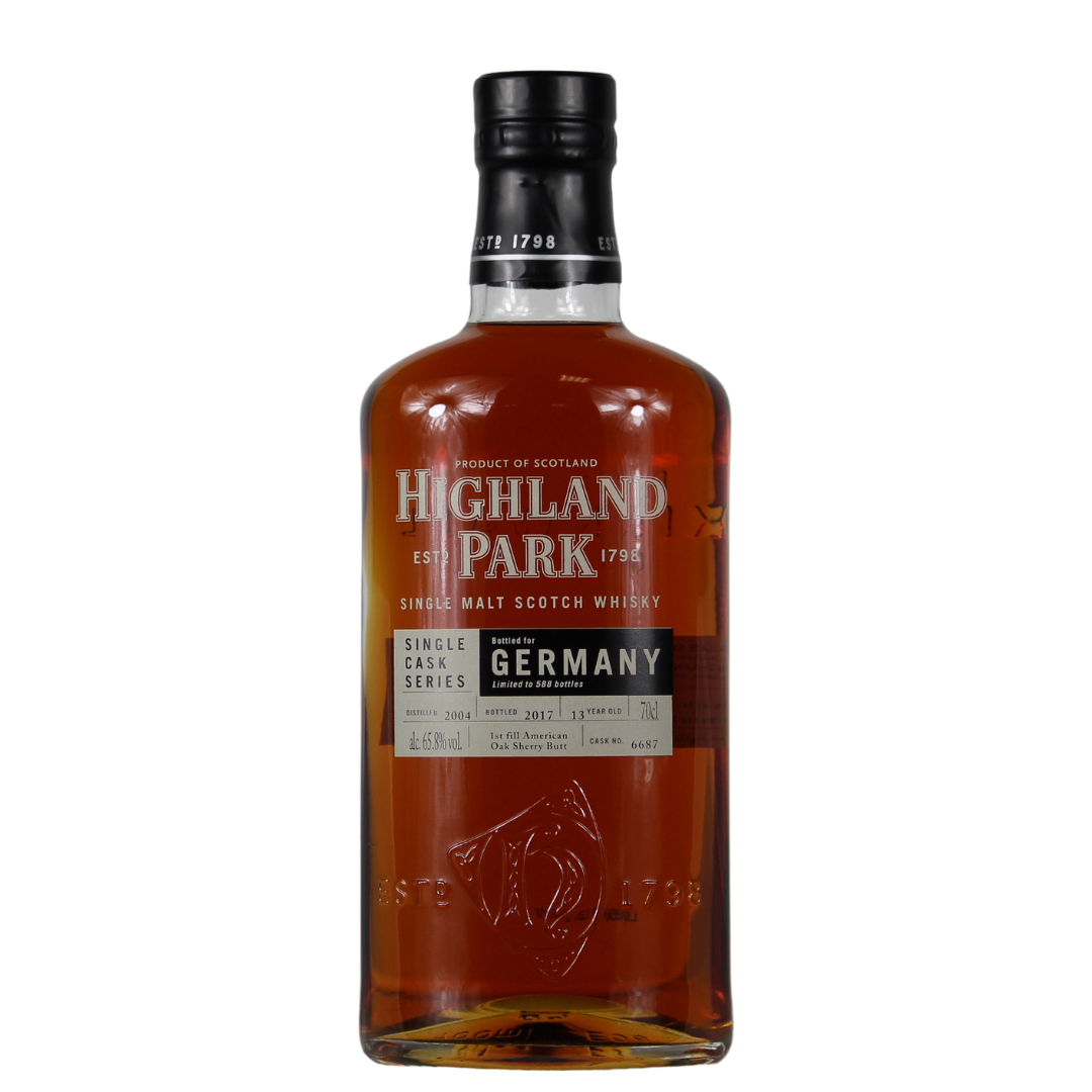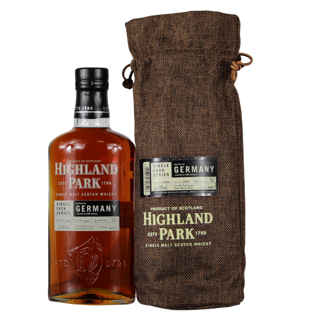 The Highland Park 13 Year Old Single Cask Series, with an impressive 65.8% alcohol by volume and a 0.7-liter bottle size, is an exceptional single malt whisky. This exclusive bottling comes from the renowned Highland Park distillery on the Orkney Islands in Scotland, known for its high-quality whiskies. The whisky impresses with its intense, multi-layered aroma structure, ranging from sweet honey notes, dark chocolate, and dried fruits to the subtle smoky note typical of Highland Park. The high alcohol content ensures a powerful taste experience that captivates with its complexity and elegance. A true highlight for whisky connoisseurs and collectors!