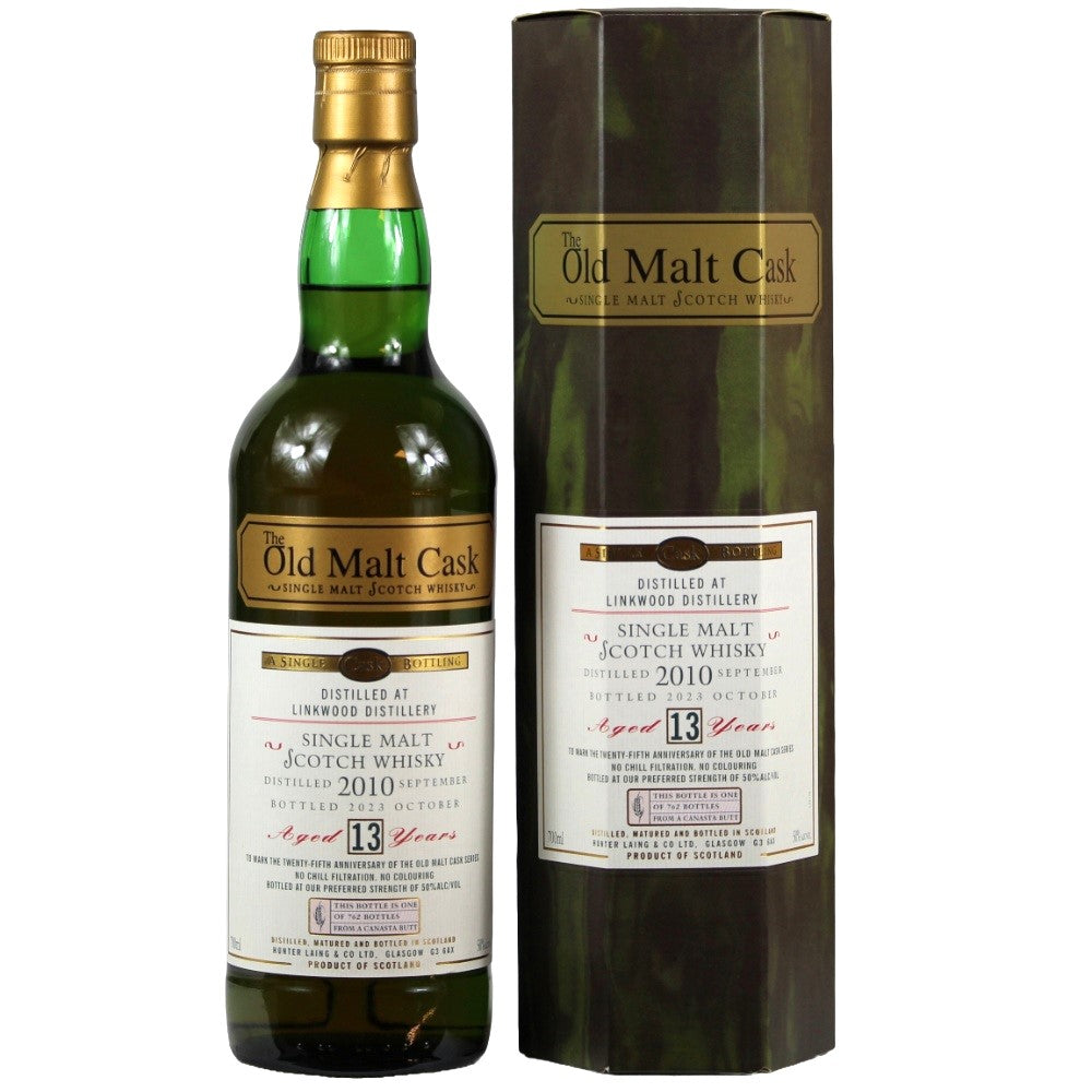 The Linkwood 13 Year Old is an exquisite single malt whiskey from the Speyside region of Scotland, bottled by the renowned Hunter Laing distillery and presented as part of the Old Malt Cask 25th Anniversary series. This whiskey was distilled in September 2010 and bottled in October 2023, reaching the perfect aging period of 13 years.