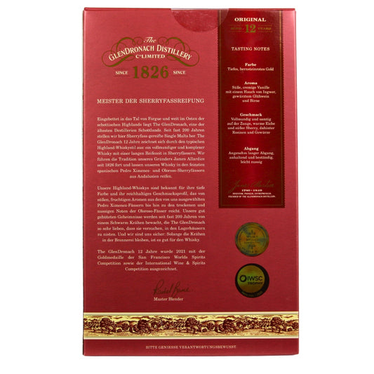 Glendronach 12 ans emballage cadeau 43% 0,7l + verre