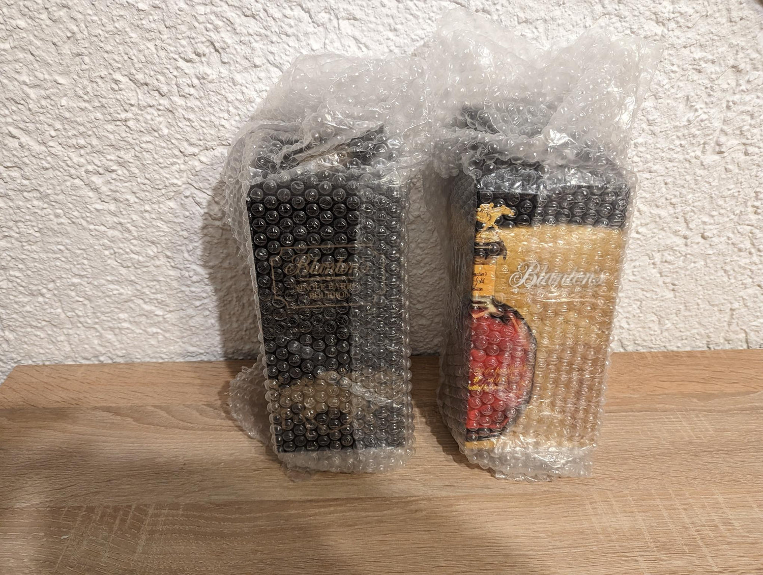 Blanton's Bourbon stellt besondere Ansprüche an die Versandverpackung dar. Wir wurden schon viele Male für unsere besonders sichere Versandverpackung gelobt. Anbei ein Beispiel wie wir sicherstellen, dass die Flaschen sicher bei Ihnen ankommen.