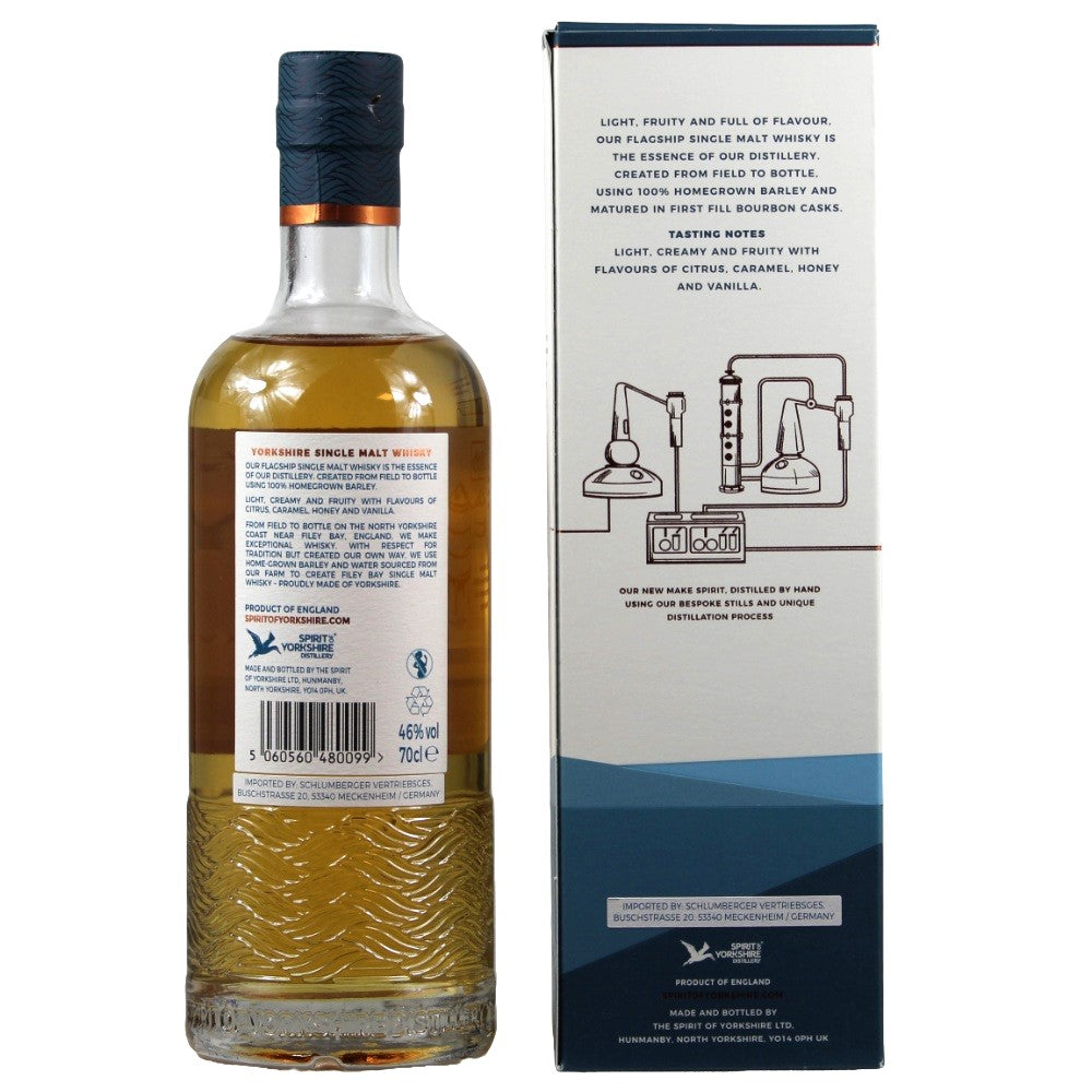 Der Filey Bay Flagship is ein einzigartiger Single Malt Whisky, welcher aus 100% heimischem Gerstenmalz hergestellt wird. Das Destillat wird ausschließlich in ehemaligen Bourbon-Fässern gereift und damit ist der Flagship der Höhepunkt der ex-Bourbon-matured Serie des Herstellers. Der mehrere Jahre lange Reifungsprozess gibt dem Whisky seine einzigartigen, fruchtigen Aromen und eine weiche, cremige Textur.