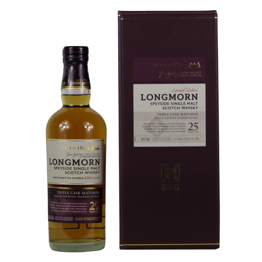 Der Longmorn 25 Jahre Batch L04 ist ein erlesener Single Malt Scotch Whisky aus der renommierten Speyside-Region Schottlands. Diese Abfüllung reifte über 25 Jahre in einer Kombination aus amerikanischen Eichenfässern, Hogsheads und Butts, was ihm eine außergewöhnliche Tiefe und Komplexität verleiht. Abgefüllt in Fassstärke mit 53,7 % Vol., bietet dieser Whisky ein intensives und vielschichtiges Geschmackserlebnis. Die lange Reifung und die sorgfältige Fassauswahl machen diesen Whisky zu einer hervorragenden Wahl für Liebhaber gereifter Single Malts.