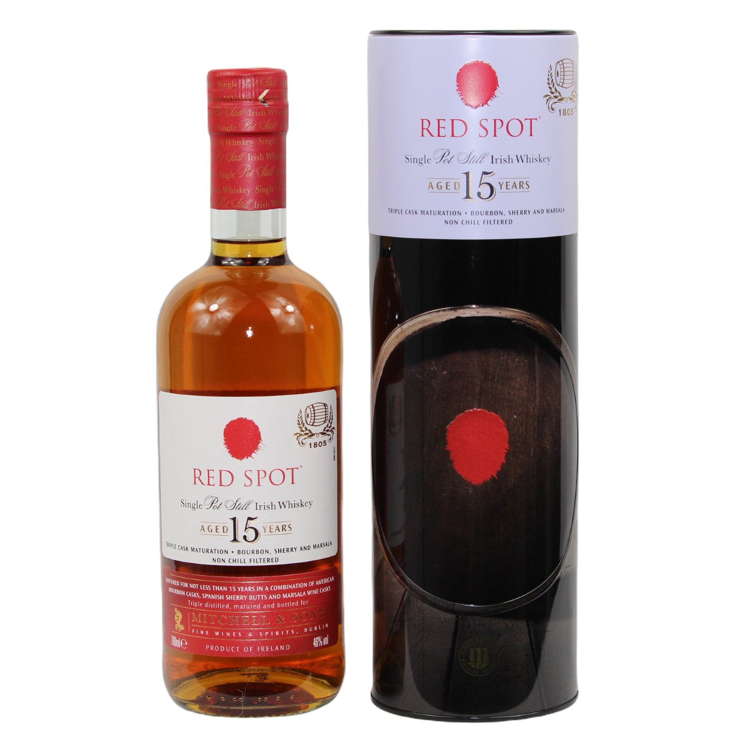 Red Spot Single Pot Still Irish Whiskey ist über 15 Jahre in einer Kombination aus amerikanischen Bourbonfässern, spanischen Sherryfässern und sizilianischen Marsala-Weinfässern gereift, die alle ihren reichen und komplexen Geschmack beisteuern, was ihn zum Spitzenreiter im Sortiment macht. Der Name Red Spot entstand aus der Praxis der Familie Mitchell, Fässer unterschiedlichen Alters mit einem Farbfleck zu markieren.
