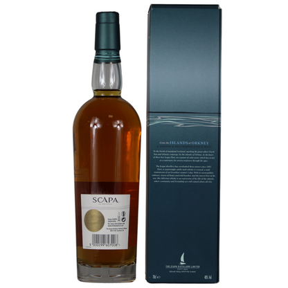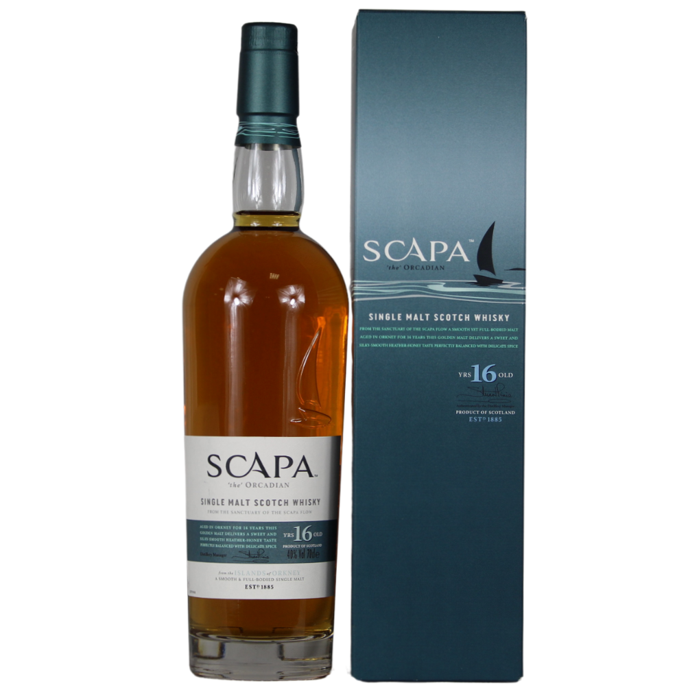 Der Scapa 16 Jahre ist ein eleganter Single Malt von den Orkney-Inseln mit einem Alkoholgehalt von 40 % in der 0,7-Liter-Flasche. Gereift in amerikanischen Eichenfässern, besticht er durch seine sanfte, maritime Charakteristik und eine feine Balance aus Fruchtigkeit und Süße. In der Nase zeigen sich Aromen von Honig, Birne, Vanille und einem Hauch Meeresbrise. Am Gaumen wirkt er weich und ausgewogen mit Noten von Karamell, hellen Früchten und dezenten Holznuancen. Der Abgang ist mild, rund und angenehm lang – ein harmonischer Insel-Whisky für Genießer subtiler Aromen.