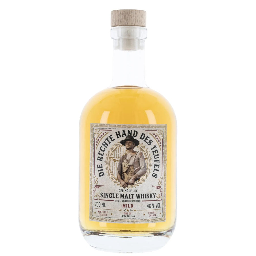 Der St.Kilian Die Rechte Hand des Teufels ist ein hervorragender Single Malt Whisky, der seine Inspiration aus dem Kultfilm von 1970 zieht. Diese limitierte Sonderedition ist eine Hommage an die Hauptfigur "Der müde Joe", auch bekannt als "Die Rechte Hand des Teufels". Wie im Film, sorgt dieser Whisky sicherlich für Recht und Ordnung auf den Geschmacksknospen.