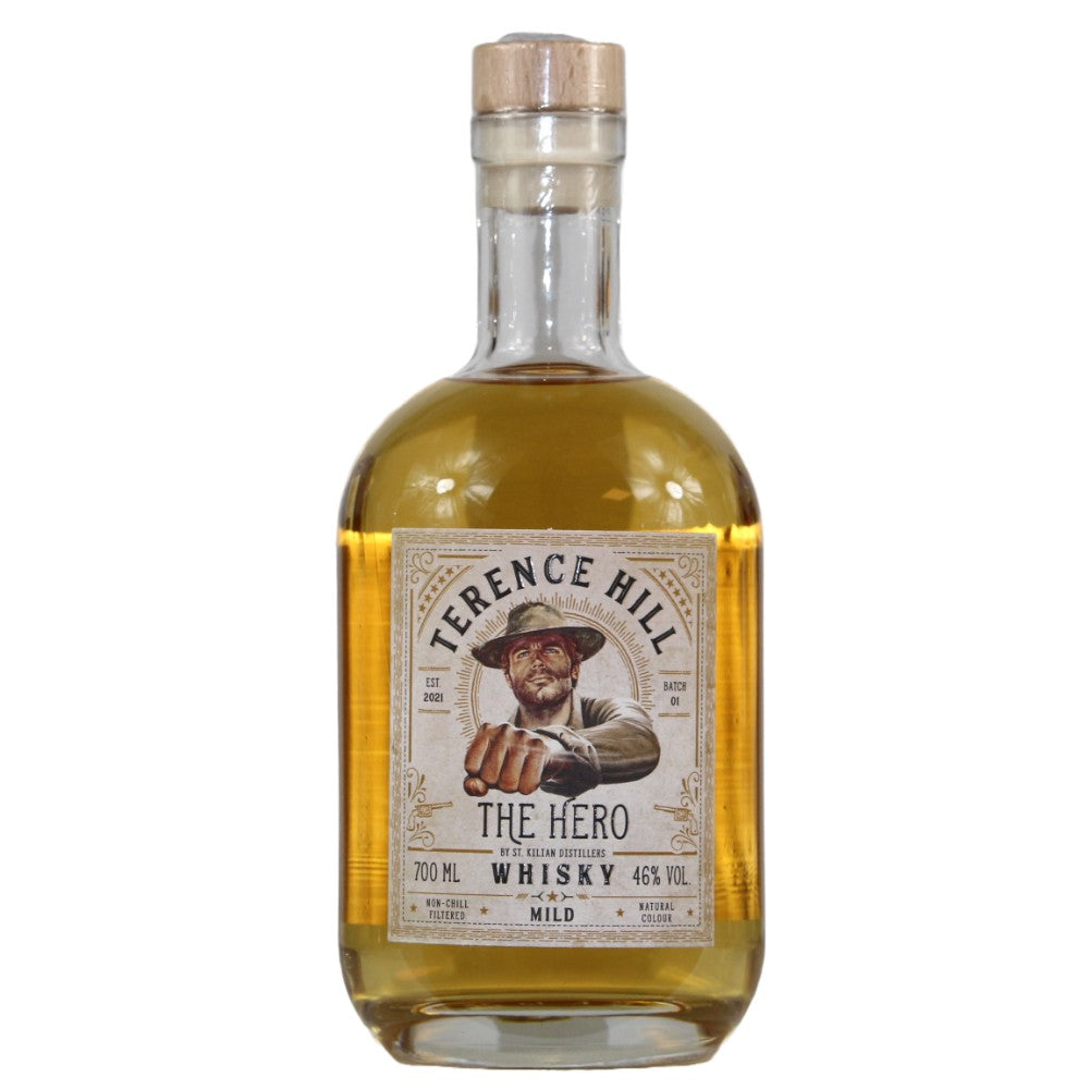 "Terence Hill - The Hero" ist ein einzigartiger Whisky von St. Kilian Distillers, der durch die Kombination von Ex-Rum Fassnoten aus eigenen Beständen und dreifach destilliertem Whiskey der Great Northern Distillery aus dem irischen Dundalk, der in amerikanischen Ex-Bourbon Fässern reifte, entstand. Ein Genuss für anspruchsvolle Whisky-Liebhaber!