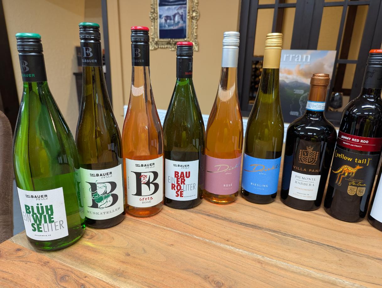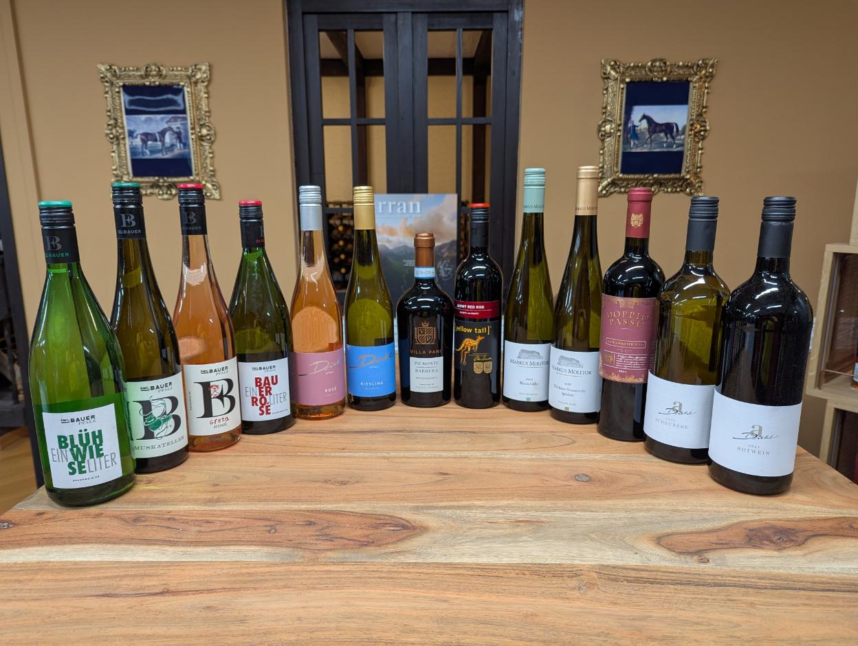 Vom lokalen Weingut Emil Bauer über Markus Mollitor ein Weingut aus Österreich bis hin zu Wein aus Italien und Australien.