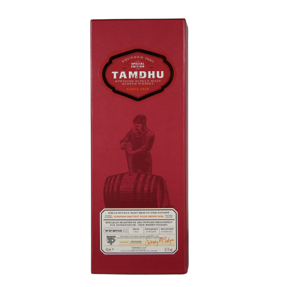 Tamdhu 2006/2020 14 Jahre Single Cask 59,7% ist ein außergewöhnlicher Single Malt Whisky, der für Kenner und Liebhaber ein besonderes Geschmackserlebnis bietet. Gereift über 14 Jahre in europäischen 1st-fill Sherry-Eichenfässern, entfaltet er ein komplexes Aromaprofil mit Noten von getrockneten Früchten, würzigem Eichenholz und einer dezenten Süße von Karamell und Vanille. Mit einem Alkoholgehalt von 59,7% präsentiert sich dieser Whisky in Fassstärke, was ihm eine bemerkenswerte Intensität und Tiefe verleiht. Jede Flasche ist ein Unikat, denn dieser Single Cask Whisky stammt aus einem einzigen Fass, was seine Exklusivität unterstreicht. Ein Tropfen Wasser kann die Aromen noch weiter öffnen, sodass sich das volle Potential dieses edlen Tropfens entfaltet.